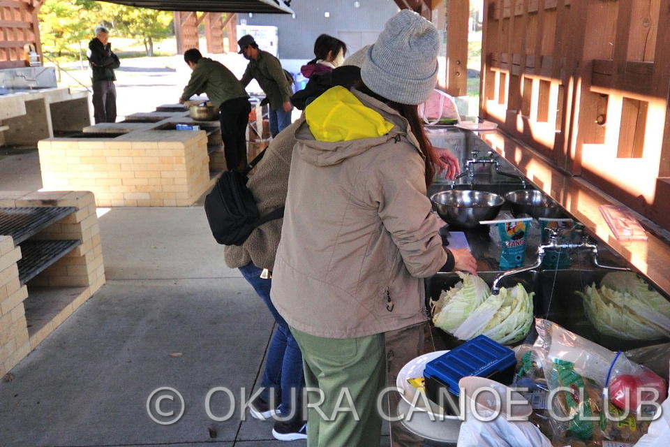 カヌークラブ納会 泉ヶ岳で納会を行いました。火起こし・食材の処理・調理・食事を、皆でわいわい言いながら楽しい時間を過ごしました。風が強くタープを設置できませんでしたが、日差しは暖かく、気持ちよく今年最後の活動を終えることができました。 |