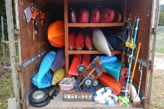 艇庫片付け 沢歩きが中止になったこの日、ちょっと早い艇庫の片付けを行いました。備品のチェックをして、艇庫に収めました。艇庫周りの草刈りもしました。 |