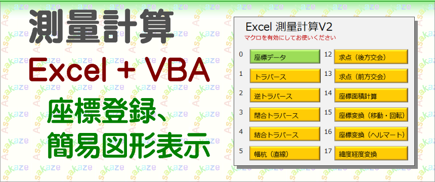 Excel のマクロ(VBA)を駆使した 測量計算ソフトです。