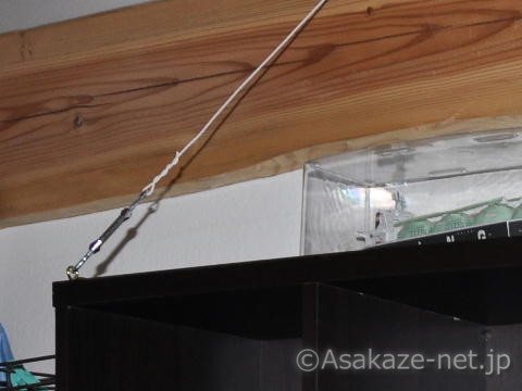 (ビスが短いと震度6の衝撃で抜けてしまいます。長いビスでがっちり固定しました。) - 棚に載せた箱物は荷造りひも等で落下を防止する。