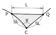 Web 測量計算2 では、「隅切り計算(片側曲線)」、「幅員交点(片側曲線)」が計算できます。それぞれの図形も表示できます。